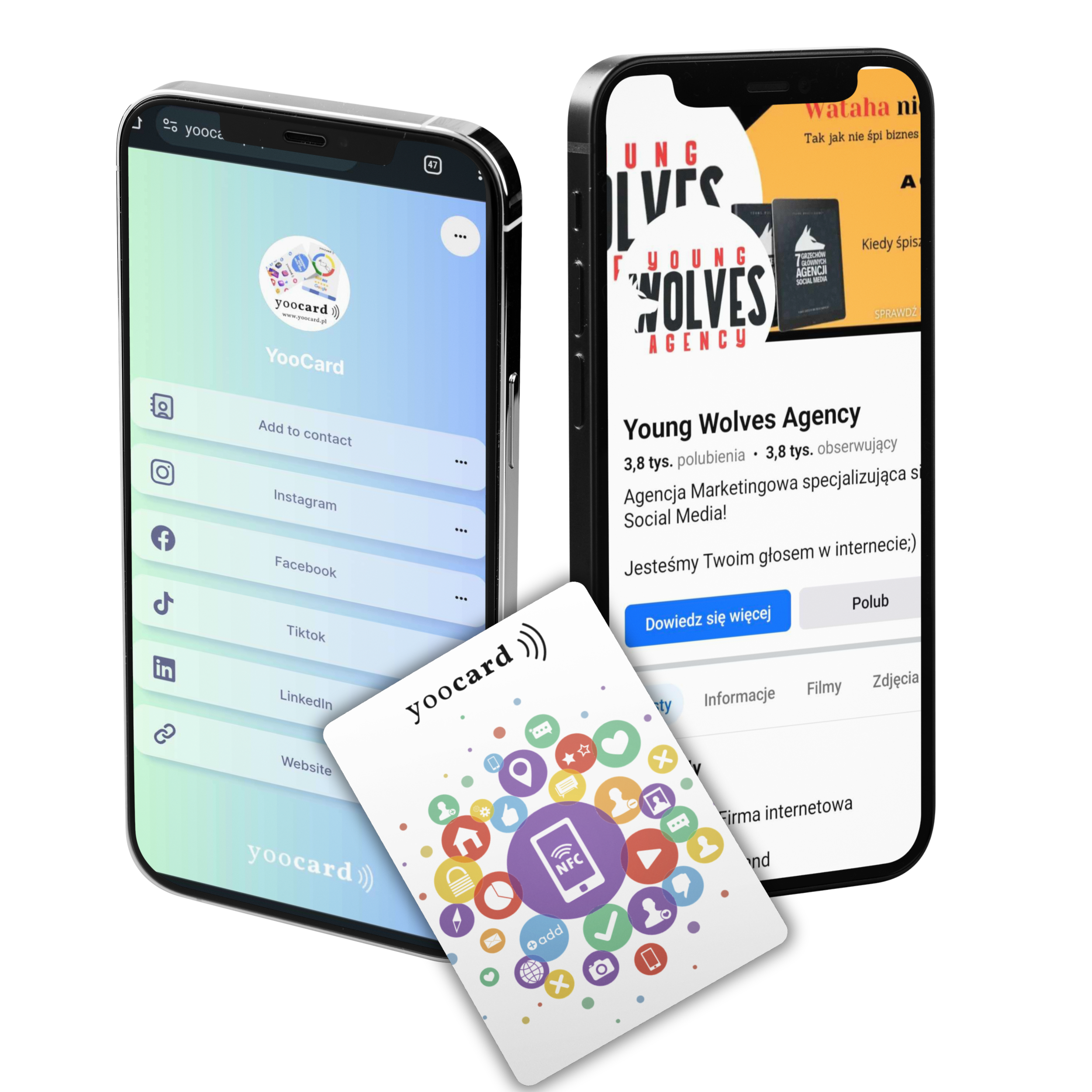 Zbliż kartę do telefonu klienta a ona od razu włączy Twoją wizytówkę Google i wyświetli wszystkie Twoje kanały: Facebook, Instagram, TikTok, Linkedin. Wszystkie, jakie posiadasz!
